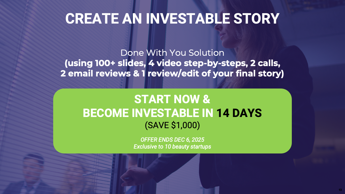 Save years of wasted effort by becoming an investable beauty venture now!