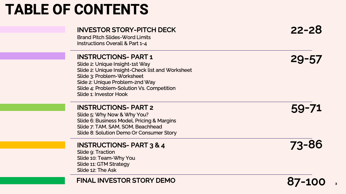 You get 100+ slides, 4 step-by-step videos (2.5 hrs), 2 strategy calls, 2 email reviews, and 2 full pitch-deck edits — all designed to build a narrative investors actually move on.