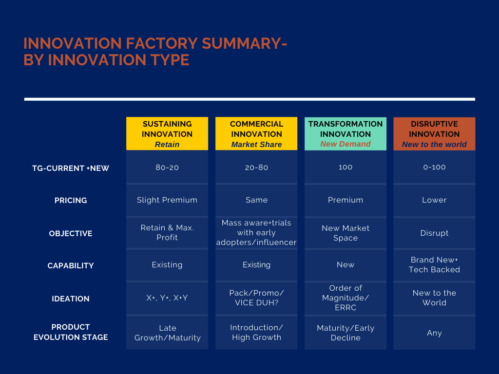 One final step could be to again check the strategic fit with the brand story even though the Innovation Factory with 4 types of innovation takes care of the same in advance.