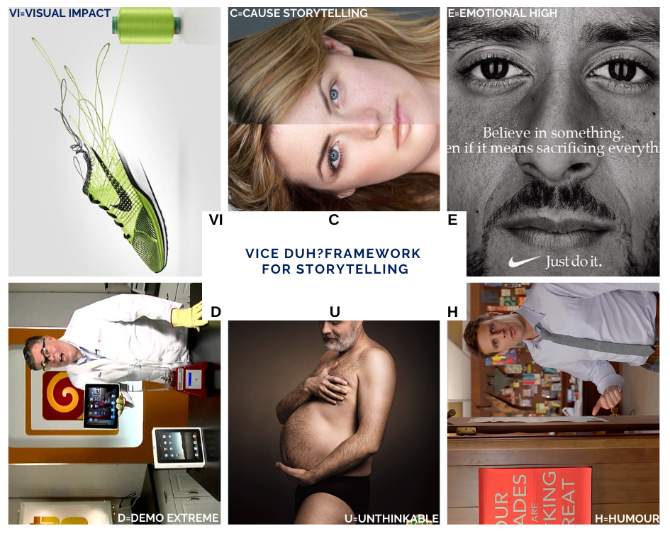 For commercial innovation, you need brand story and subsequent storytelling with content. VICE DUH? is a framework I created for impactful storytelling.