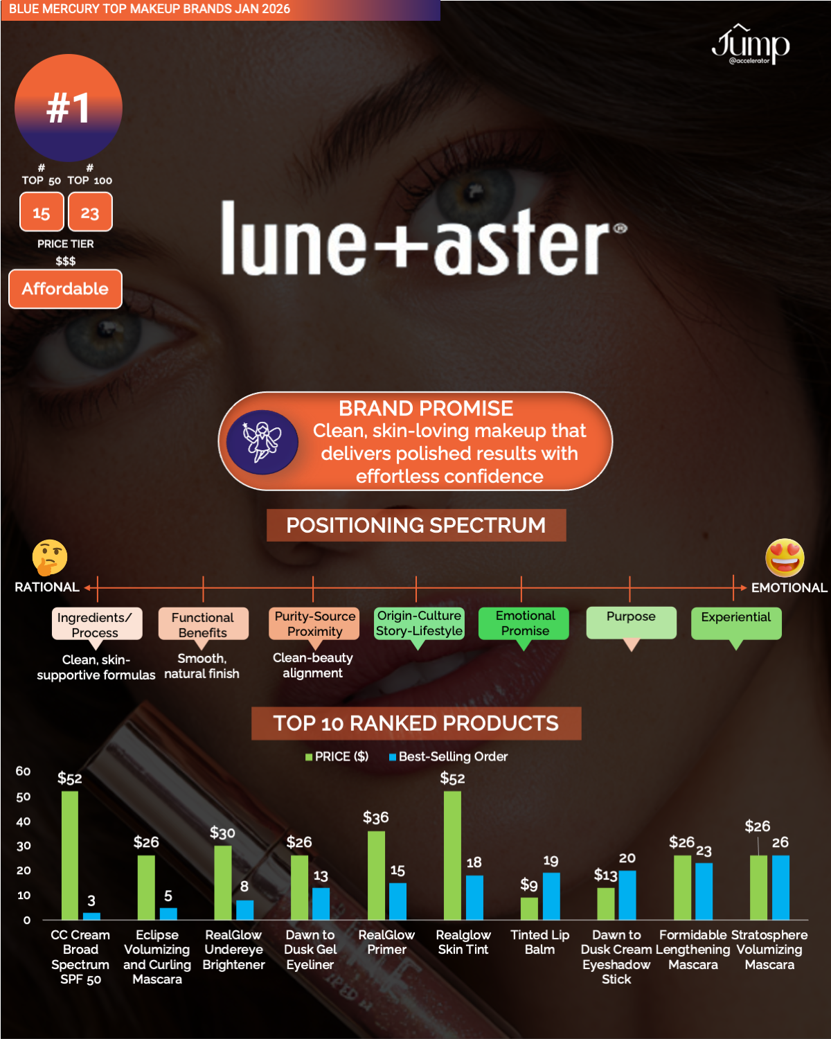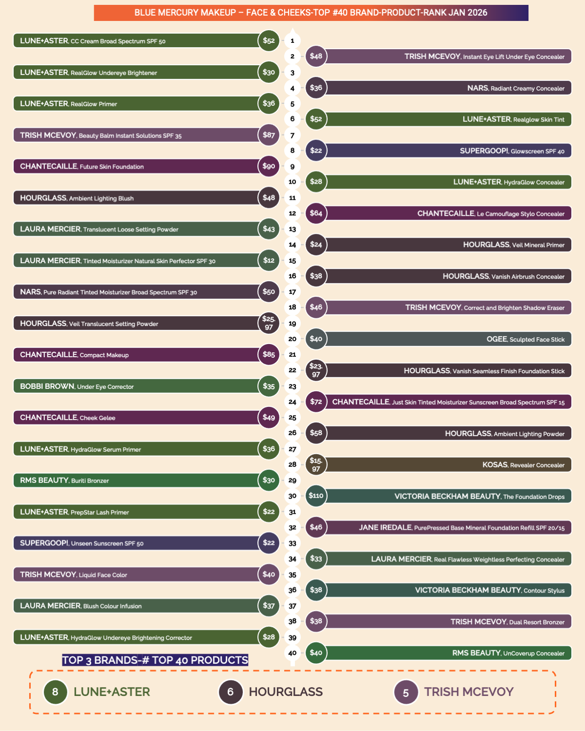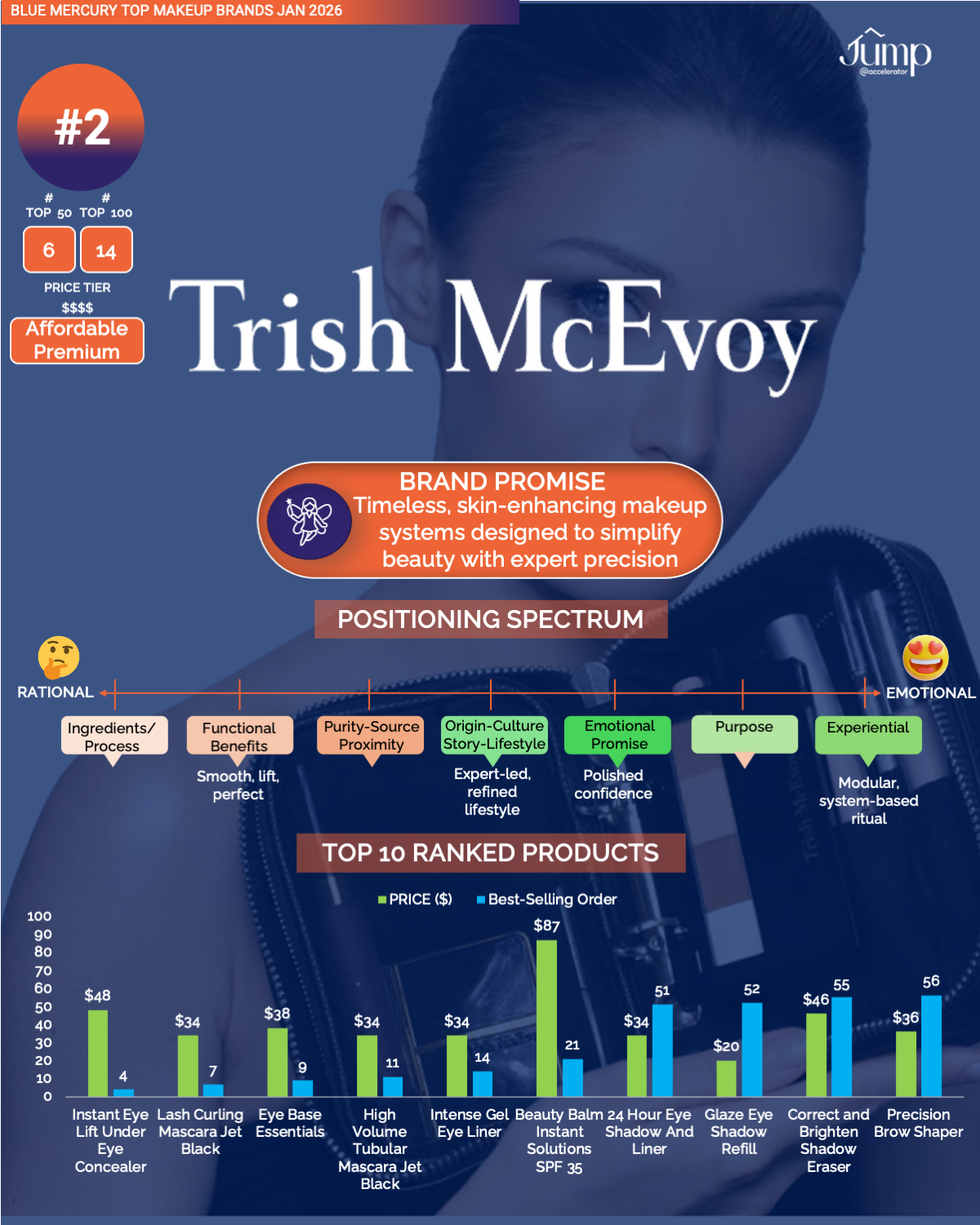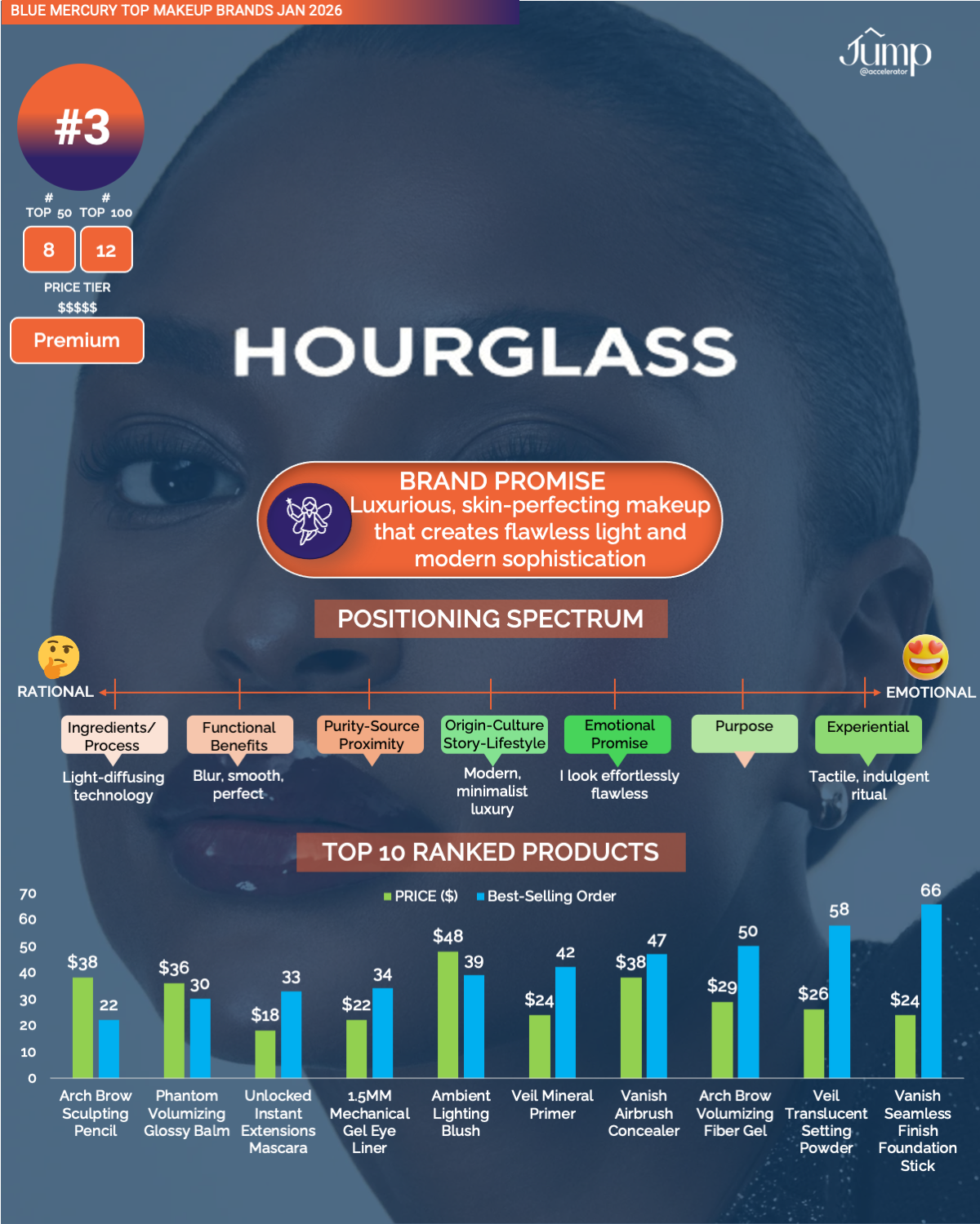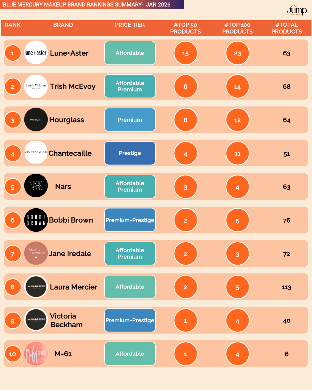 This January 2026 Makeup Report gives you what your competitors don’t have: the exact ranking positions, portfolio penetration of 250+ brands across 3,000+ products, 10+ categories and 9 price tiers.