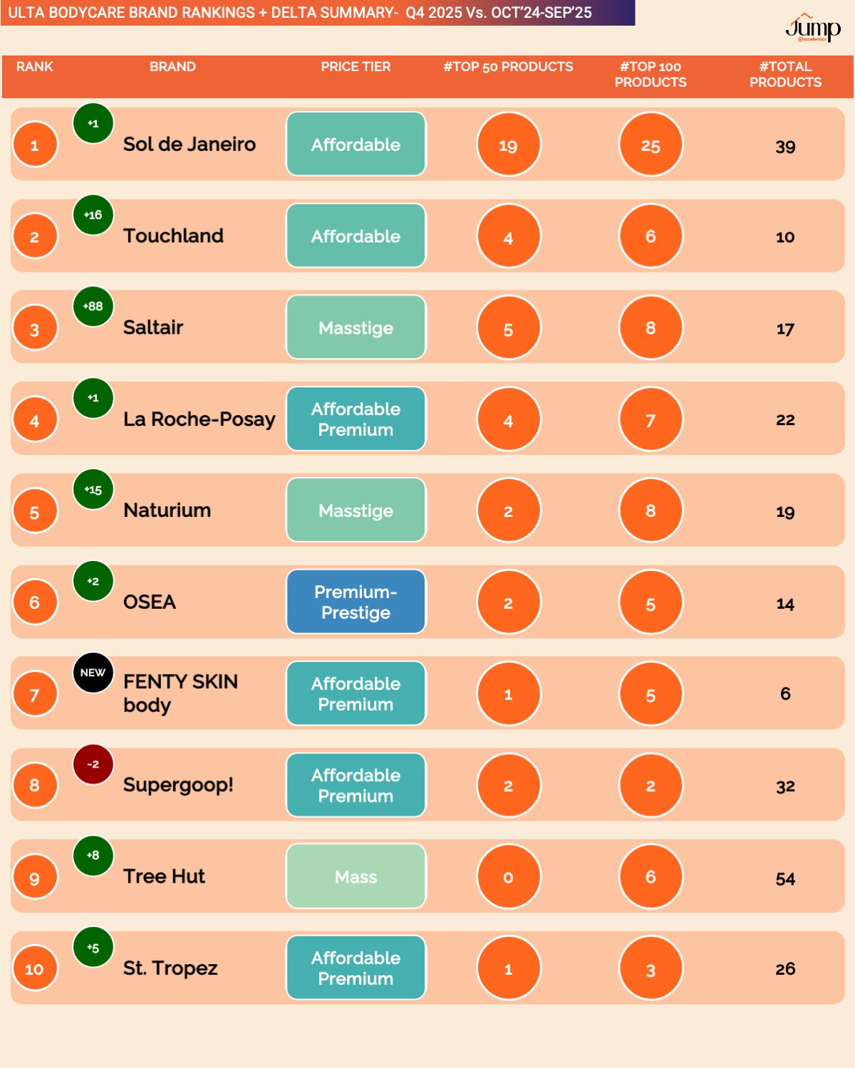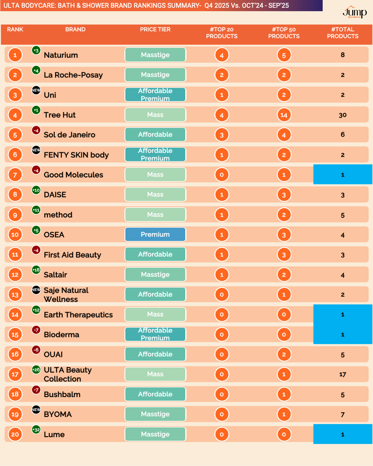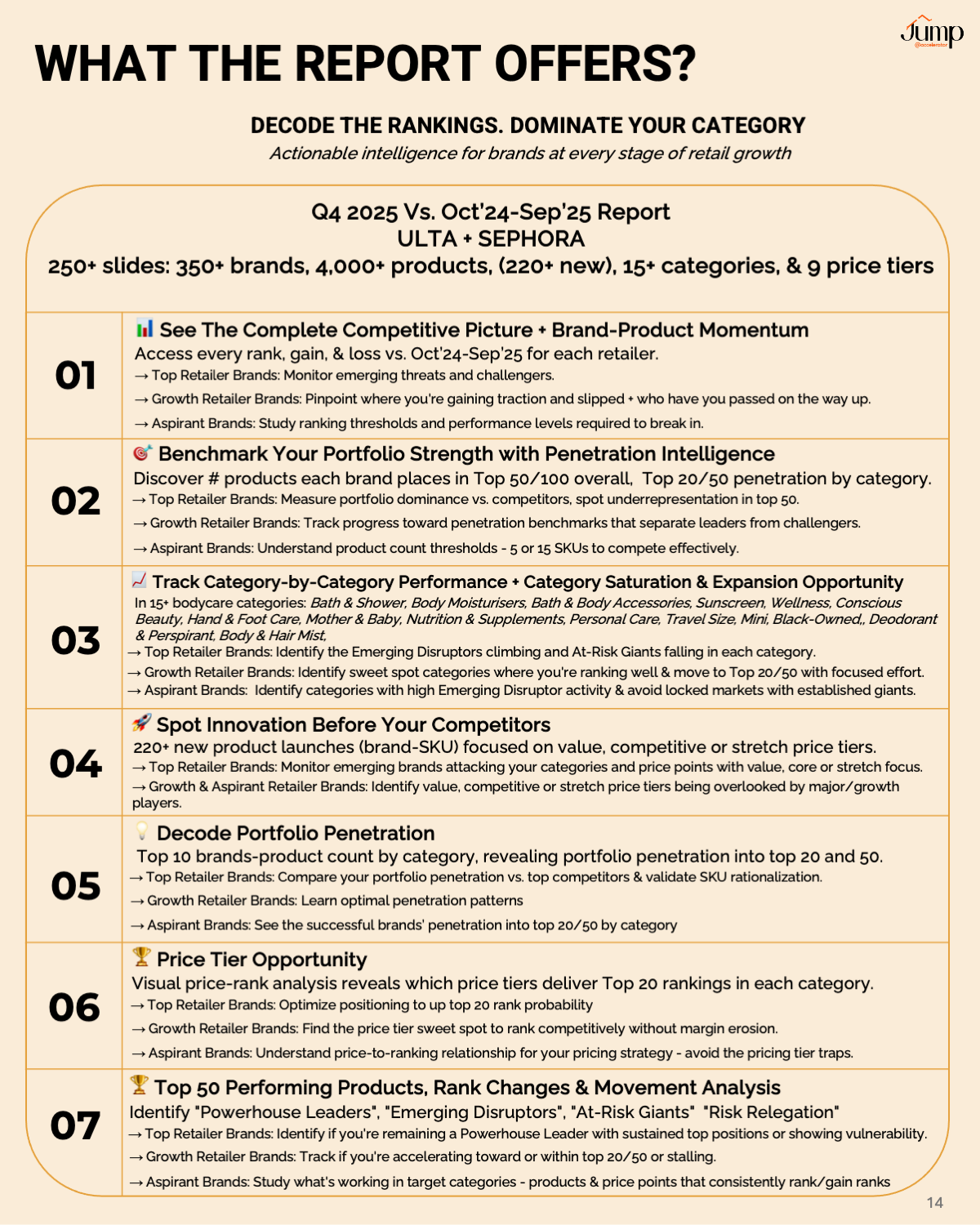 The report covers for Q4 2025 for ULTA + SEPHORA Bodycare in 225+ slides for 350+ brands, 4,000+ products, 15+ categories, & 9 price tiers
