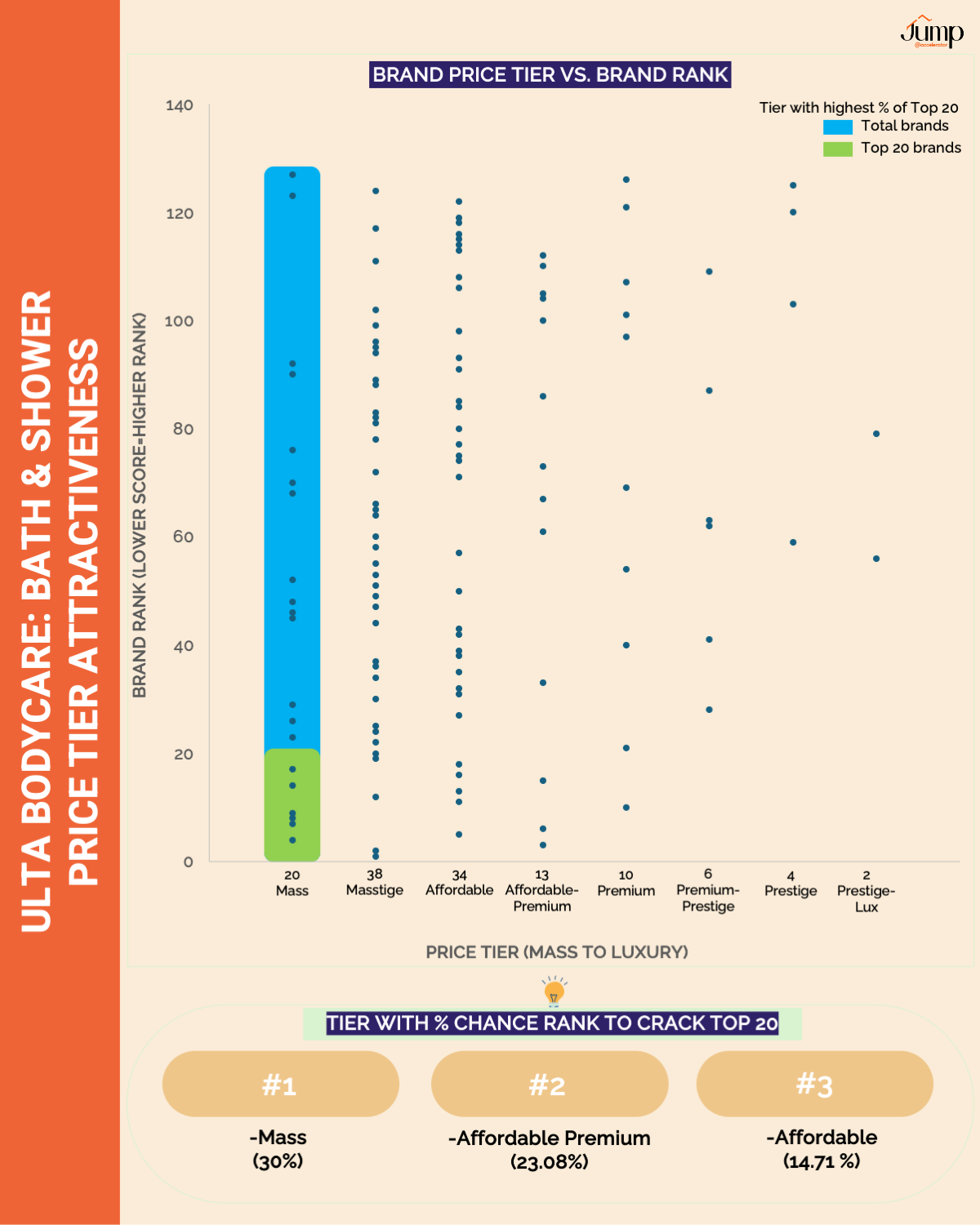 Visual price-rank analysis reveals which price tiers consistently deliver Top 20 rankings in each category.