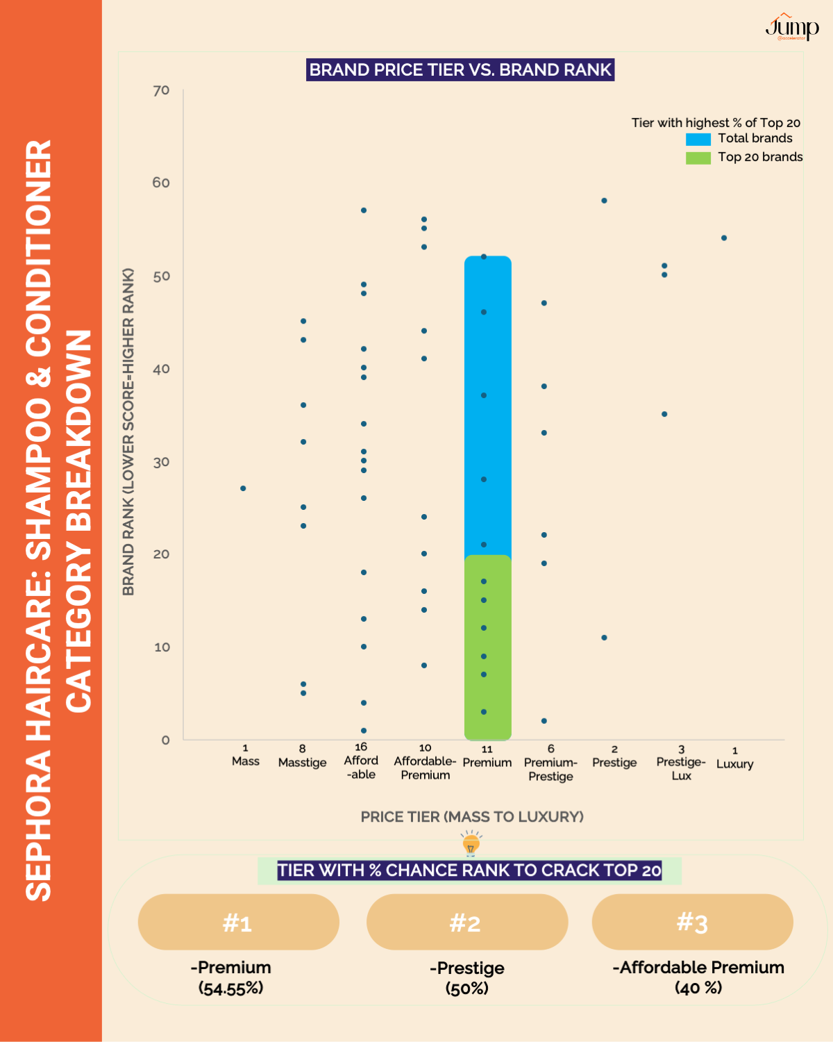 Visual price-rank analysis reveals which price tiers consistently deliver Top 20 rankings in each category.